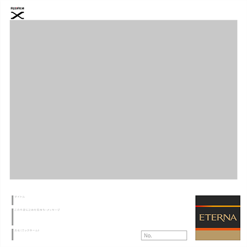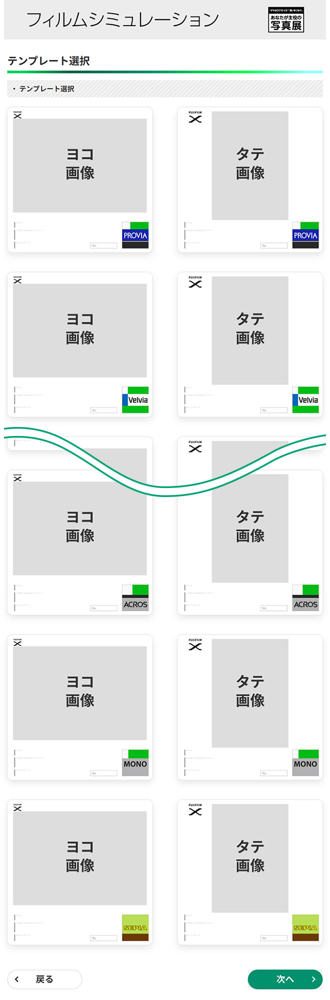 フィルムシミュレーションごとに14種類のテンプレート(タテ/ヨコ)をご用意しています。