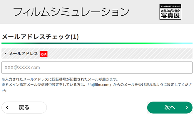 ドメイン指定メール受信可否設定をしている方は、「fujifilm.com」からのメールを受け取ることができませんので、受け取れるように設定してください