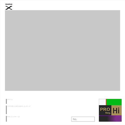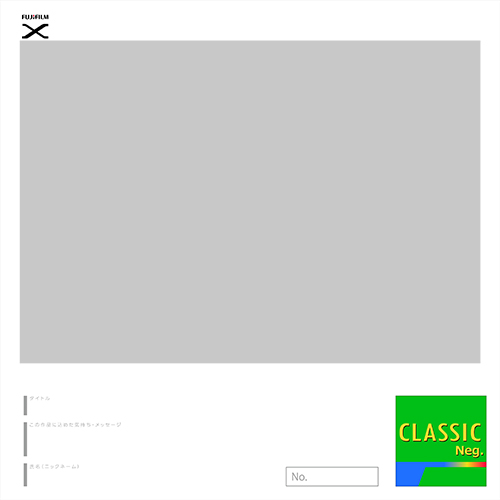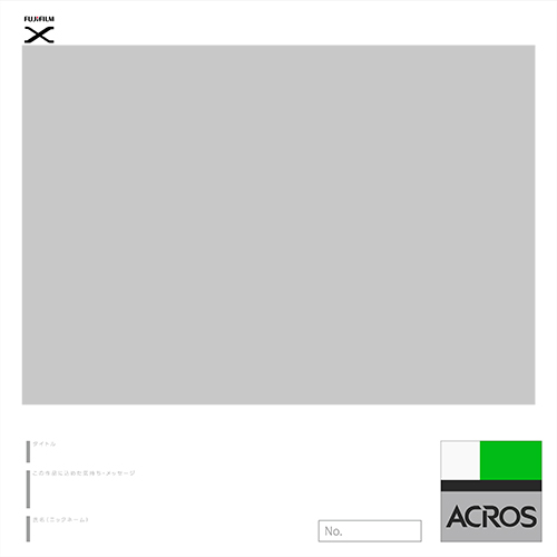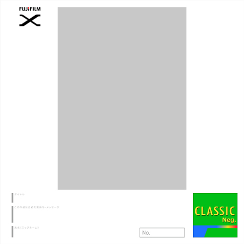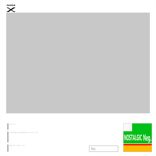 FS(フィルムシミュレーション)レシピ、撮影機材など、ご自由にご記入ください。